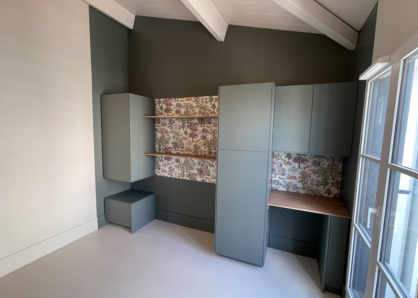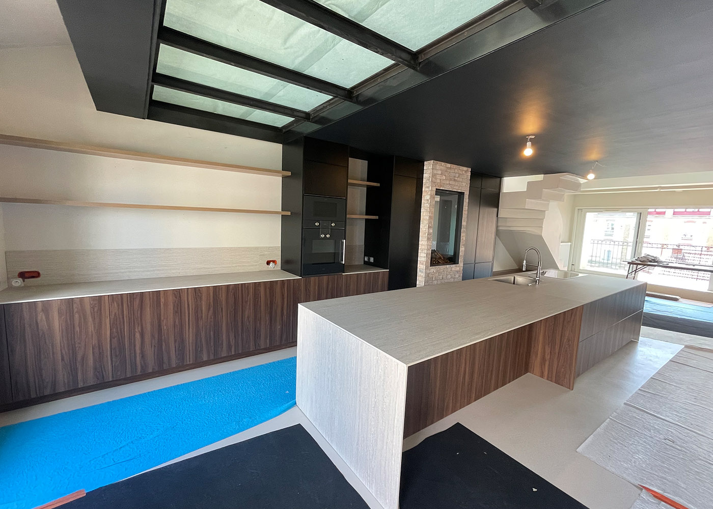 Les travaux ont couvert tous les corps de métier : création d’aménagements sur mesure, escaliers, halls d’entrée, parkings, caves, façades et devantures. Les logements ont été intégralement équipés (cuisines, salles de bain, dressings, électricité, plomberie), avec une attention particulière portée aux finitions, à la décoration, aux verrières, terrasses, balcons et éléments de confort tels que des inserts cheminée.
