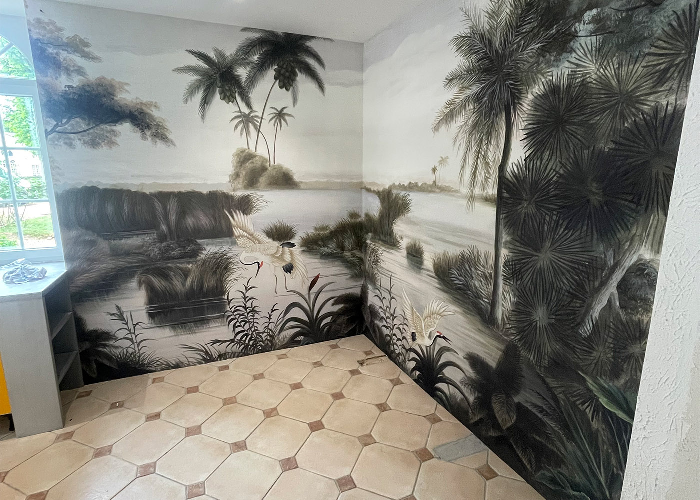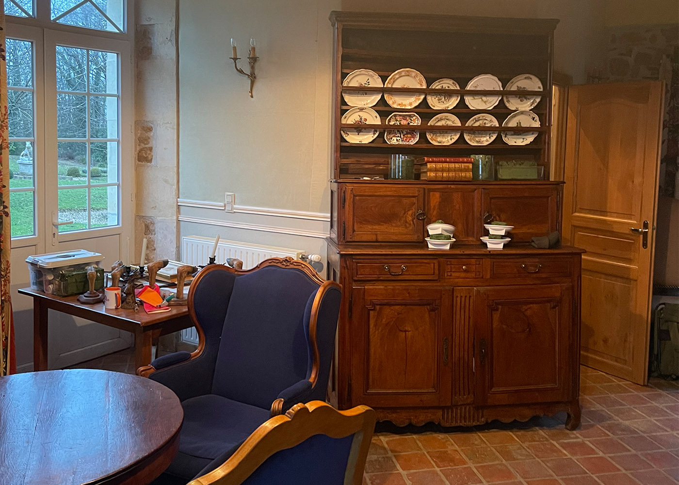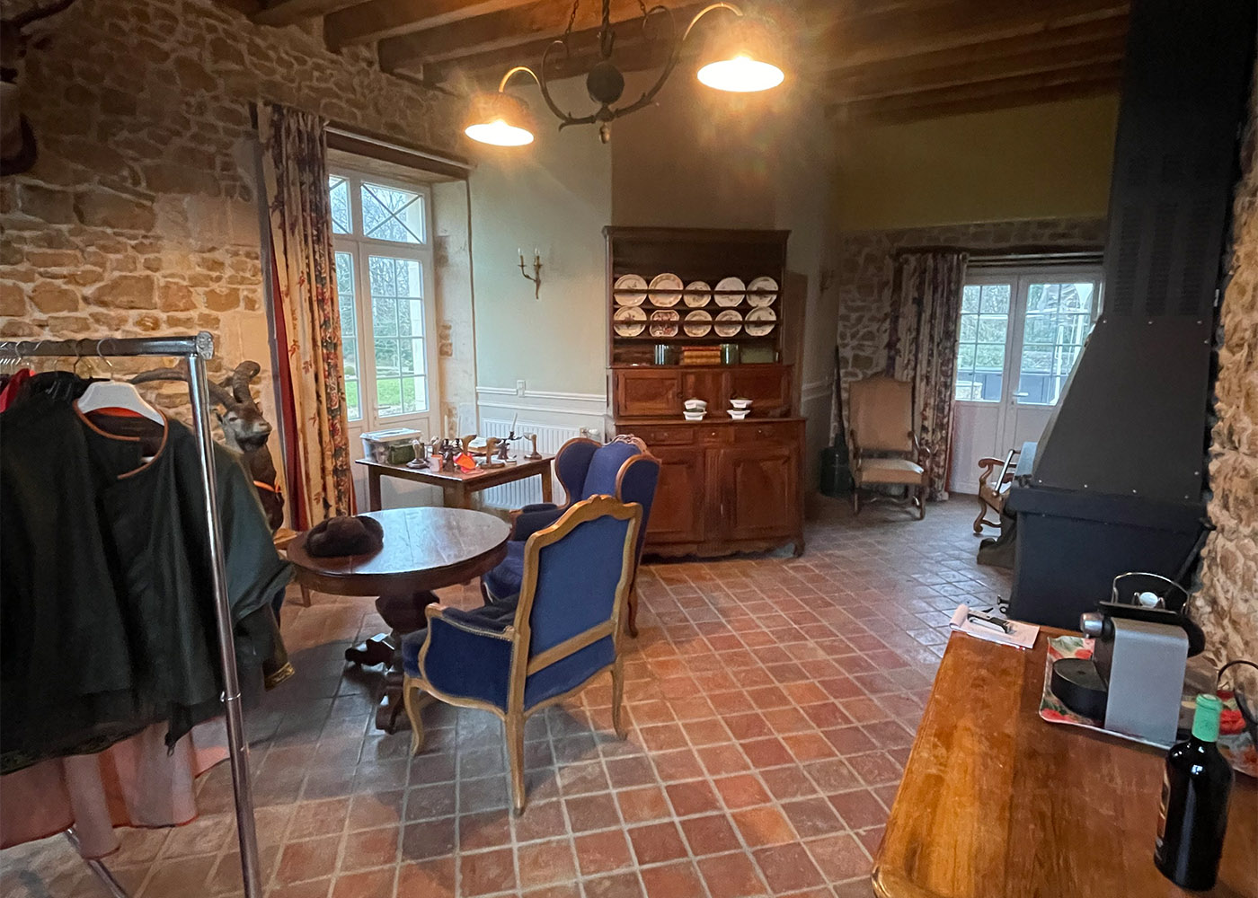 L’aménagement comprend une cuisine équipée avec îlot central, une buanderie attenante, la pose de l’électroménager et une tapisserie décorative apportant du cachet à l’ensemble. Un projet alliant fonctionnalité, convivialité et respect du caractère du bâti.