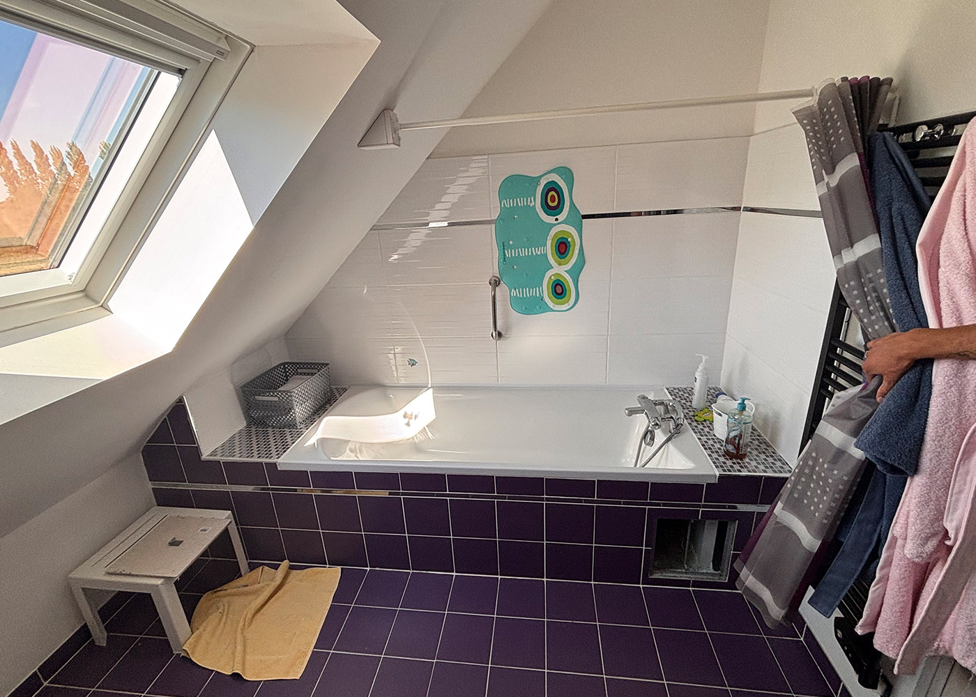 Cette salle de bain située sous combles a fait l’objet d’un projet clé en main.